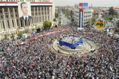 دمشق تجمعات ومسيرات للاحتفال بذكرى تأسيس حزب البعث الذي حكم سورية طوال نحو خمسة