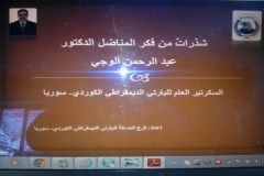 يتناول فيه فكر الراحل عبد الرحمن الوجي السكرتير العام للحزب والذي توفي على اثر مرض عضال في اقليم كوردستان العراق