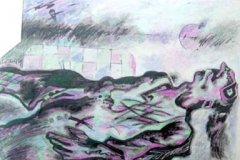 وتعكس "الاقنعة" وجوه رجال واطفال ونساء "دون ملامح واضحة تبرز منها وجوه مهشمة وقد رسمت بعضها باسلوب التخطيط باقلام من رصاص وحبر كما استخدمت الوانا مائية رمادية تتمتع بمزايا تعبيرية" كما يشرح الفنان.