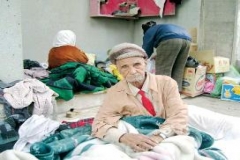 ويتألف مخيمها الذي يحيط به حاجز تفتيش للشرطة من مجموعة فرش عتيقة، أكوام من البطانيات، وعشرات العلب المصنوعة من الكرتون، وأكياس بلاستيكية وقناني مياه فاسدة.