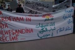 ان ما قامت به قوى الأمن من اعتقالات بحق ناشيطنا لن يزيدنا إلا اصرارا وعزما على تصعيد نشاطنا و حراكنا . وكلما زادت قوى الأمن من انتهاكات بحق شبابنا ، كلما توحدنا أكثر و خطينا الى الامام بإيمان أكبر. و نقول للأجهزة الأمنية التي تترقب هذه البيانات الصادرة عن شبابنا الكورد بأننا قادرون على تغير التكتيك و مباغتتكم بأنشطة غير مسبوقة. لذا فنحن نتوجه إلى بنات وابناء شعبنا الكوردي وكذلك إلى أشقائنا وشركائنا في الوطن من كل القوميات والطوائف بالمشاركة الفعالة والكبيرة في مظاهرة يوم الثلاثاء المصادف 27-9-2011 في الساعة الثامنة مساءا أمام جامع قاسمو.